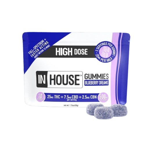 Find these Blueberry Gummies by InHouse at The Heirloom Collective in Western Massachusetts. Visit our dispensary to savor the delicious taste and fast-acting effects of these premium gummies.