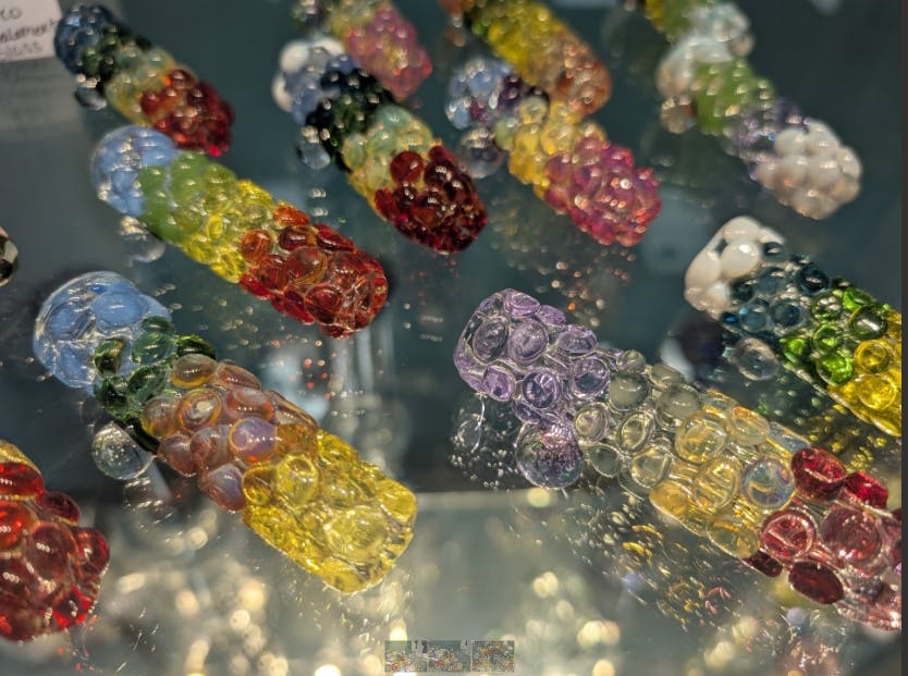 Rainbow colored bubble chillums designed by our friends at Hubbard Glass.