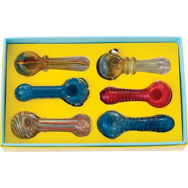 Experience sophistication with the 6ct. 4.5" Glass Hand Pipe (Colors Vary). This finely designed hand pipe, made from top-grade Glass, offers a clean and enjoyable smoking experience. Elevate your collection with this unique piece.